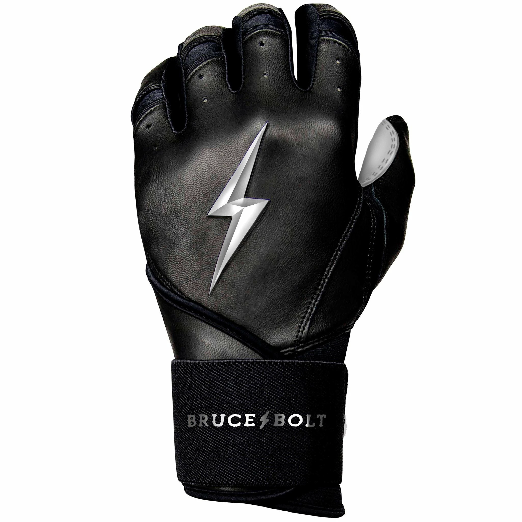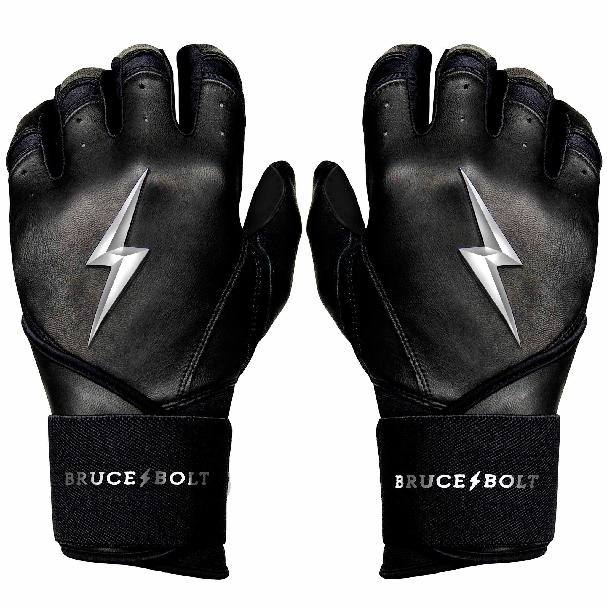 Bruce Bolt PREMIUM PRO Chrome Series Long Cuff Batting Gloves: Black
