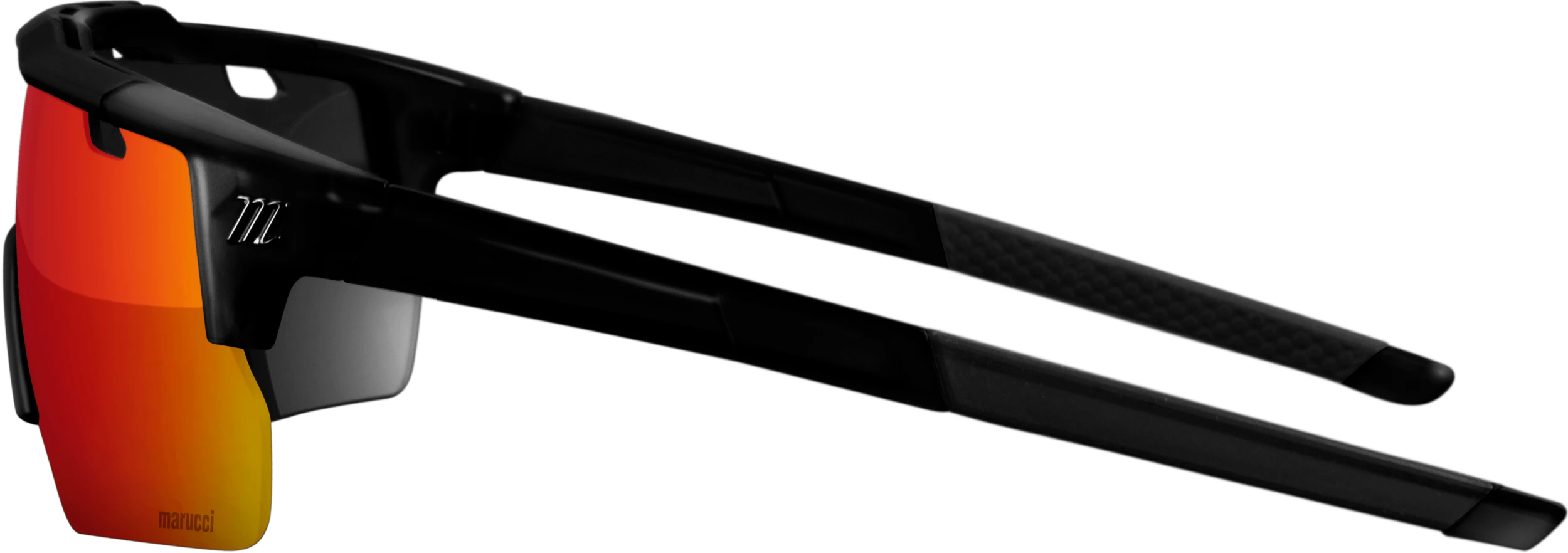 Marucci Shield Performance Youth Sunglasses are made specifically for on-field use with lenses produced by Carl Zeiss Vision, engineered to enhance clarity, improve visibility, and balance color perception to create higher performing on-field sunglasses. The Shield’s single-lens design allows for full range of view on the field and includes additional interchangeable lens for easy personalization.